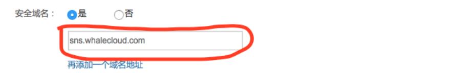 3)填写包名和Bundle ID(与包名相同)相关值在“基础配置--》App证书”内查看,Apple id没有上架前可以随便填写。下载网址要安卓与苹果都可以下载的网页,安全域名选择“是”, 将安全域名填写为sns.whalecloud.com;